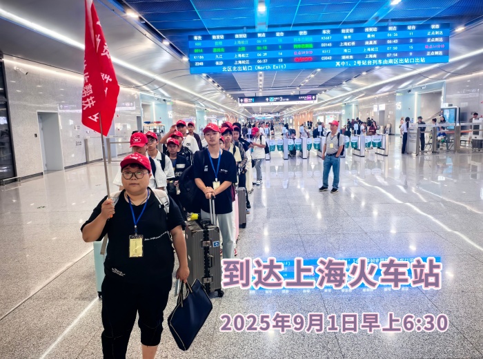 9月1日清晨,20名云南新生在老师的带领下,经过36小时火车行程,平安到达上海的学校报道,学校领导在校门口迎接欢迎新生入学。