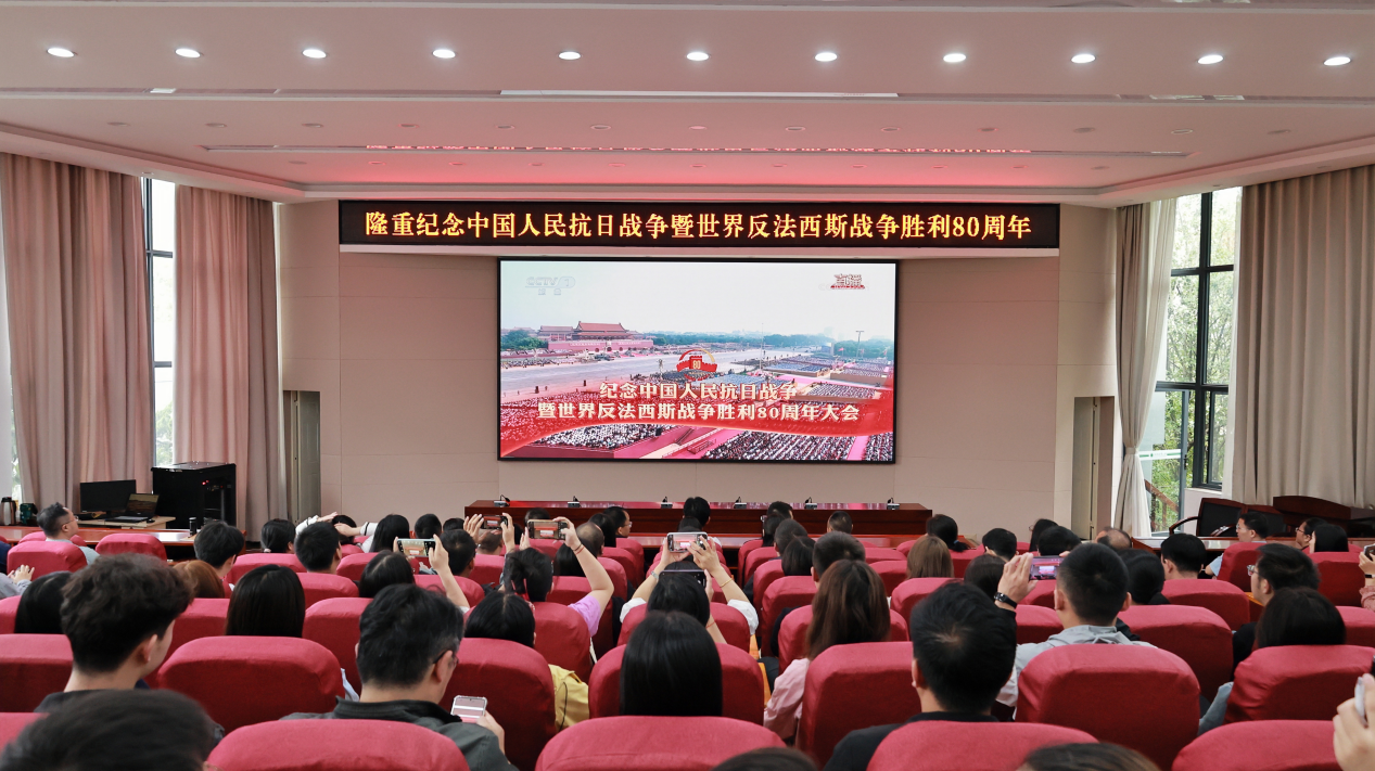 9月3日上午9时,西南林业大学组织全体师生集中收看纪念中国人民抗日战争暨世界反法西斯战争胜利80周年大会直播,共同缅怀革命先烈,重温抗战历史,弘扬爱国主义精神。