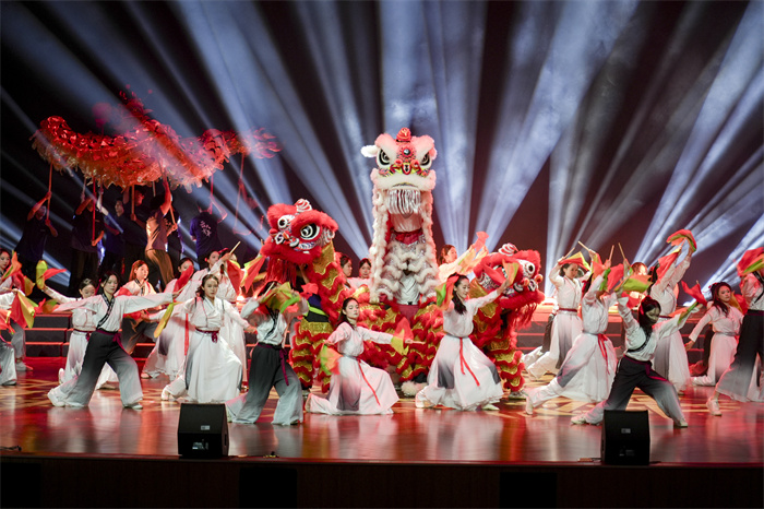 《薪火相传,旗开得胜》融合了舞狮、武术等中华优秀传统文化元素