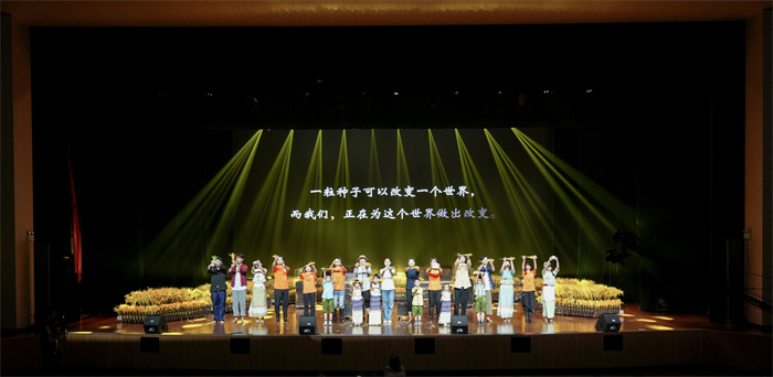 在“根脉·中华魂”篇章中,《薪火相传,旗开得胜》的精彩演出,不仅展现了中华优秀传统文化的魅力,更将爱国主义教育融入其中。云南大学退休教授、知名学者通过主题MV的方式,为新生送上祝福;“溯源·校史情”篇章中,话剧《典籍里的云大》通过再现学校服务国家建设的奋斗历程,强化新生对“党有号召,云大有行动”优良传统的理解;“筑梦·担使命”篇章用艺术的方式呈现新时代云大学子在中国式现代化建设中挺膺担当的奋进事迹,引领青年学子担负时代使命;“奋进·新征程”篇章里,器乐合奏《鼓乐和鸣·共书华章》奏响了新时代青年的文化自信,吹响了云大迈向新征程的号角。最后全场齐声高唱《歌唱祖国》,激昂的旋律中,“请党放心,强国有我”的青春誓言久久回荡。