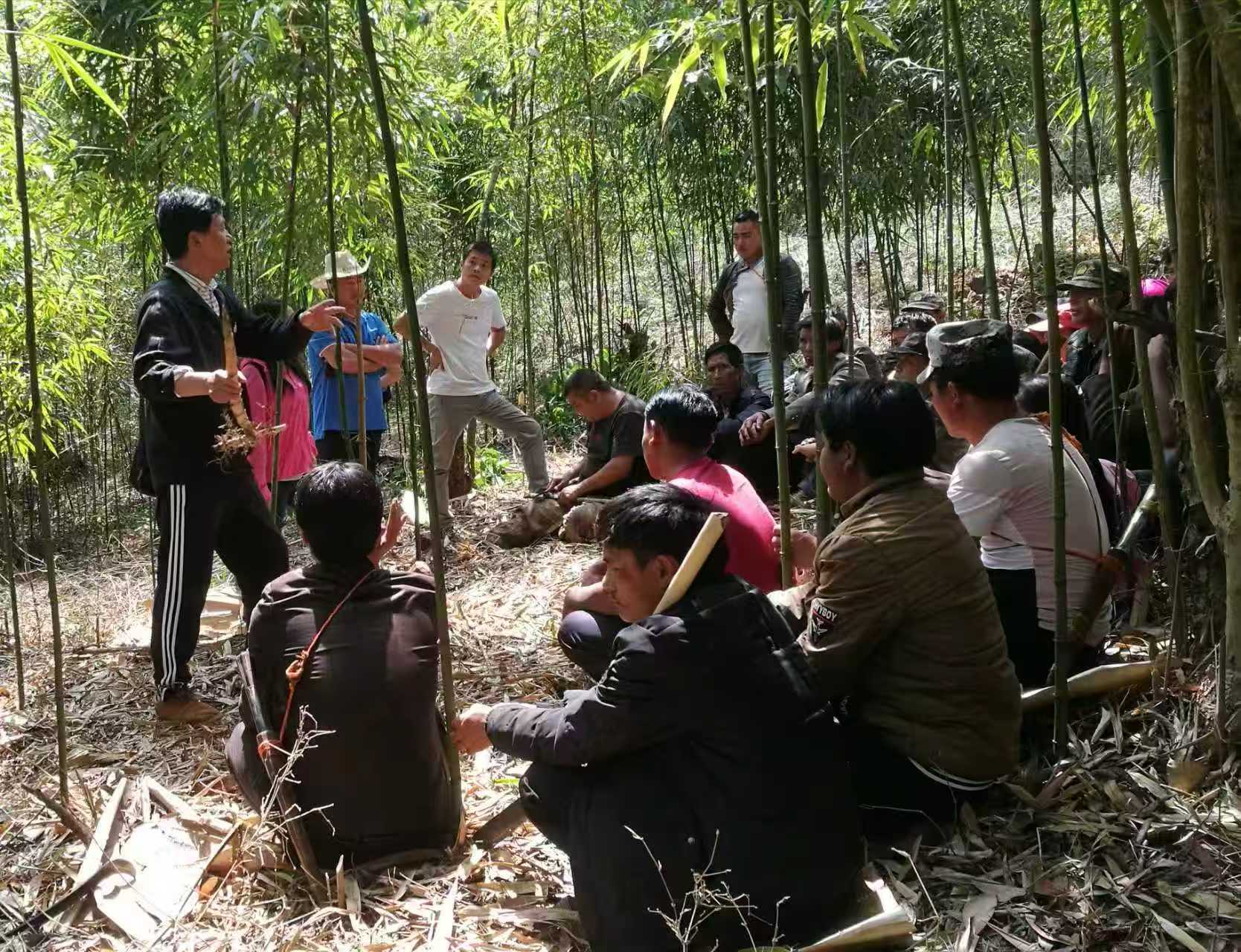 技术落地,离不开“零距离”的贴心服务。每年育苗季、造林季,团队的电话就成了“竹农热线”:在昌宁县勐统镇,他们连续一周每天工作12小时,白天现场指导扦插,晚上组织集中培训;在澜沧东主村,他们冒雨查看竹林长势,泥鞋沉重难抬,衣衫湿了又干、干了又湿。“他们不像教授,更像是‘泥腿子博士’!”农户们充满信赖的称呼,是对团队最好的褒奖。截至2024年,团队建立示范基地5500多亩,辐射推广面积71.78万亩,新增产值120.81亿元;培训农户近万人,带动4.9万户农户增收。