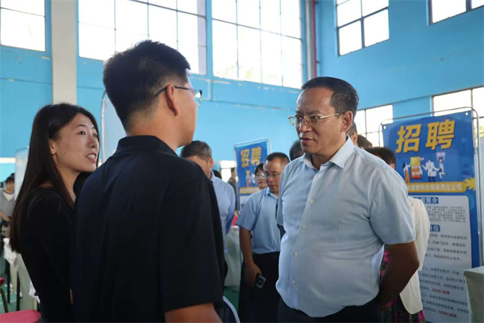 线下招聘会现场设置“政策咨询区”“简历诊断区”“应征入伍咨询”三个服务??椋纳窖г旱澄榧枪鹫?、党委副书记冯林虎等带队走访企业展位,与用人单位代表深入交流人才需求标准,并现场指导毕业生职业规划。各二级学院分管学生工作的副书记到场指导,与用人单位代表深入交流,了解用人需求,并勉励毕业生树立正确的就业观念,勇敢迎接职场挑战。同时还举办线上招聘直播,将岗位直达因实习等不能现场参会的近两年毕业生,学生参与热度达3290人次。