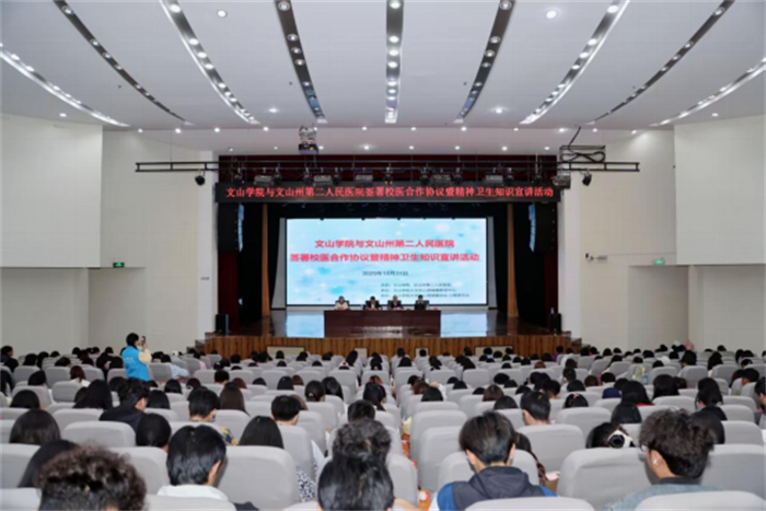 为深入贯彻落实教育部等十七部门印发的《全面加强和改进新时代学生心理健康工作专项行动计划(2023—2025年)》,畅通心理危机转介绿色通道,提升师生心理健康服务水平,近日,文山学院与文山州第二人民医院共同开展合作签约仪式暨精神卫生知识宣讲活动。